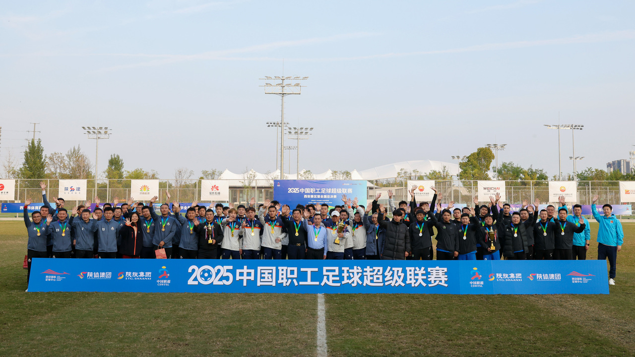 比赛结束后,所有参赛队伍和工作人员在球场中央集合,拍下了一张大大的“全家福”,有球员高捧着冠军奖杯,有球员嘴角咬着奖牌耍酷,还有球员右手拉着儿子,左手牵着爱人……大家共同挥手示意过后,2025中国职工足球超级联赛西安赛区的比赛正式落幕。然而,现场的一幕幕告诉我们,中国“职超”,绝不止于足球,职工体育的精神必将一直延续下去。(工人日报客户端记者 祝盼 摄影 鲜康)